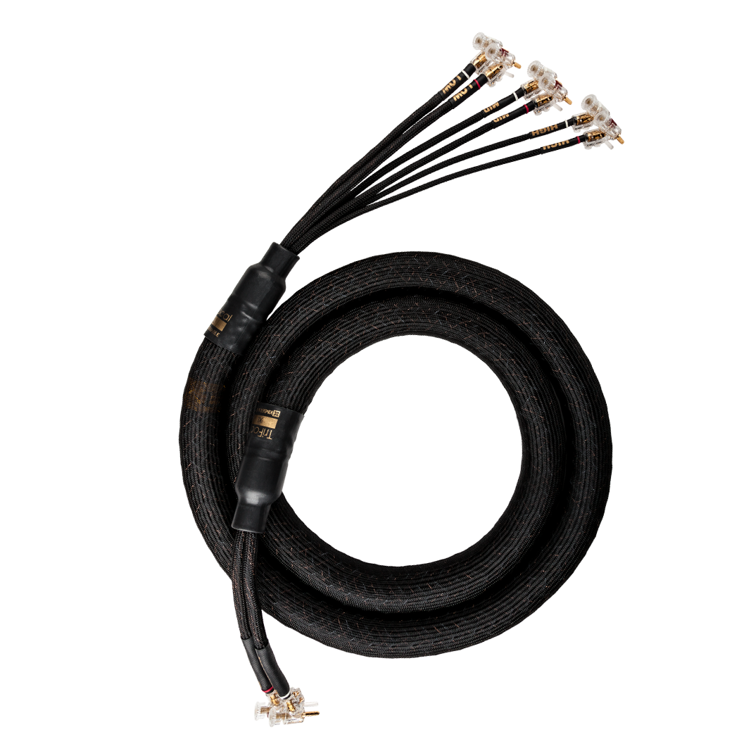 Five passes through the braider are required to create the TRIFOCAL XL. 1 - six wire braid for high frequency. 2 - braided layer of ESD yarn for electrical and mechanical damping. 3 - twelve wire braid for mid range connection. 4 - braided layer of ESD yarn for electrical and mechanical damping. 5 - twenty four wire braid for low frequency connection.Three distinctly unique cables in a single body. A true triwire or triamp cable in one sleek package. Made of equal parts TC and VS conductors. The best of both TC and VS attributes with much better soundstage and more precise imaging. 5.5 AWG (13.7 mm2 per polarity overall to provide the critical link to your music.